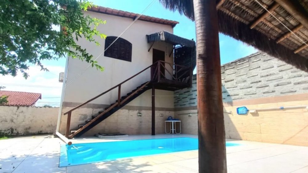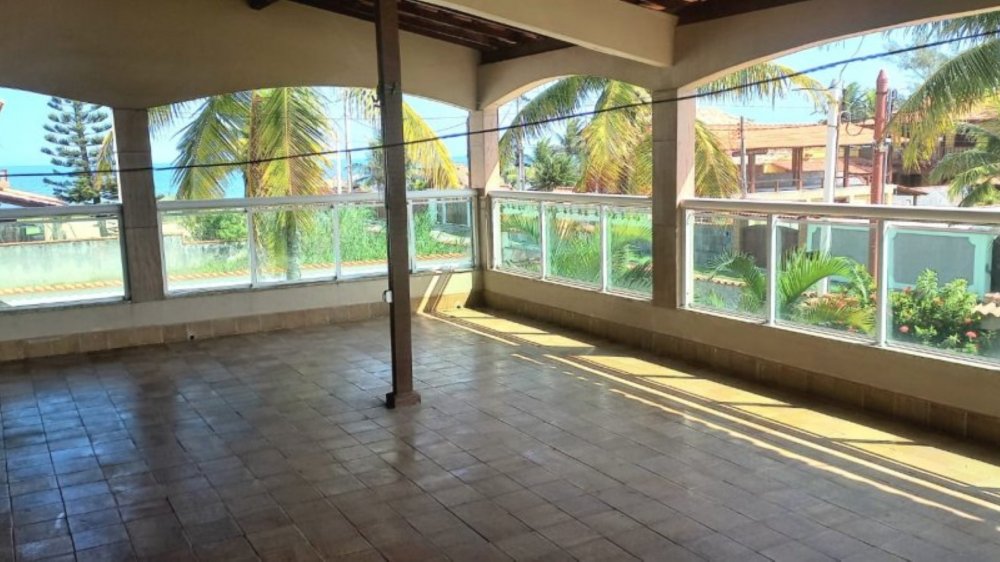 Entrada pela área de serviço ou escada lateral frente da casa. Varandão com vista para o mar, salão de festa com 8 janelas e banheiro. Poço próprio, água da Cedae, rua asfaltada, 200 metros da areia da praia...