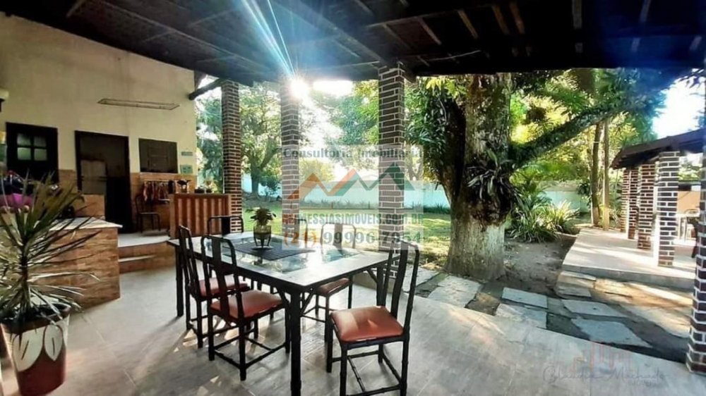 A casa principal com arquitetura tradicional composta por três dormitórios amplos e dois banheiros, proporcionando comodidade para acomodar até oito pessoas. A sala de estar é perfeita para momentos de relaxamento em família, enquanto a varanda oferece vistas deslumbrantes das montanhas ao redor. A cozinha prática e a área de serviço completam os ambientes internos.