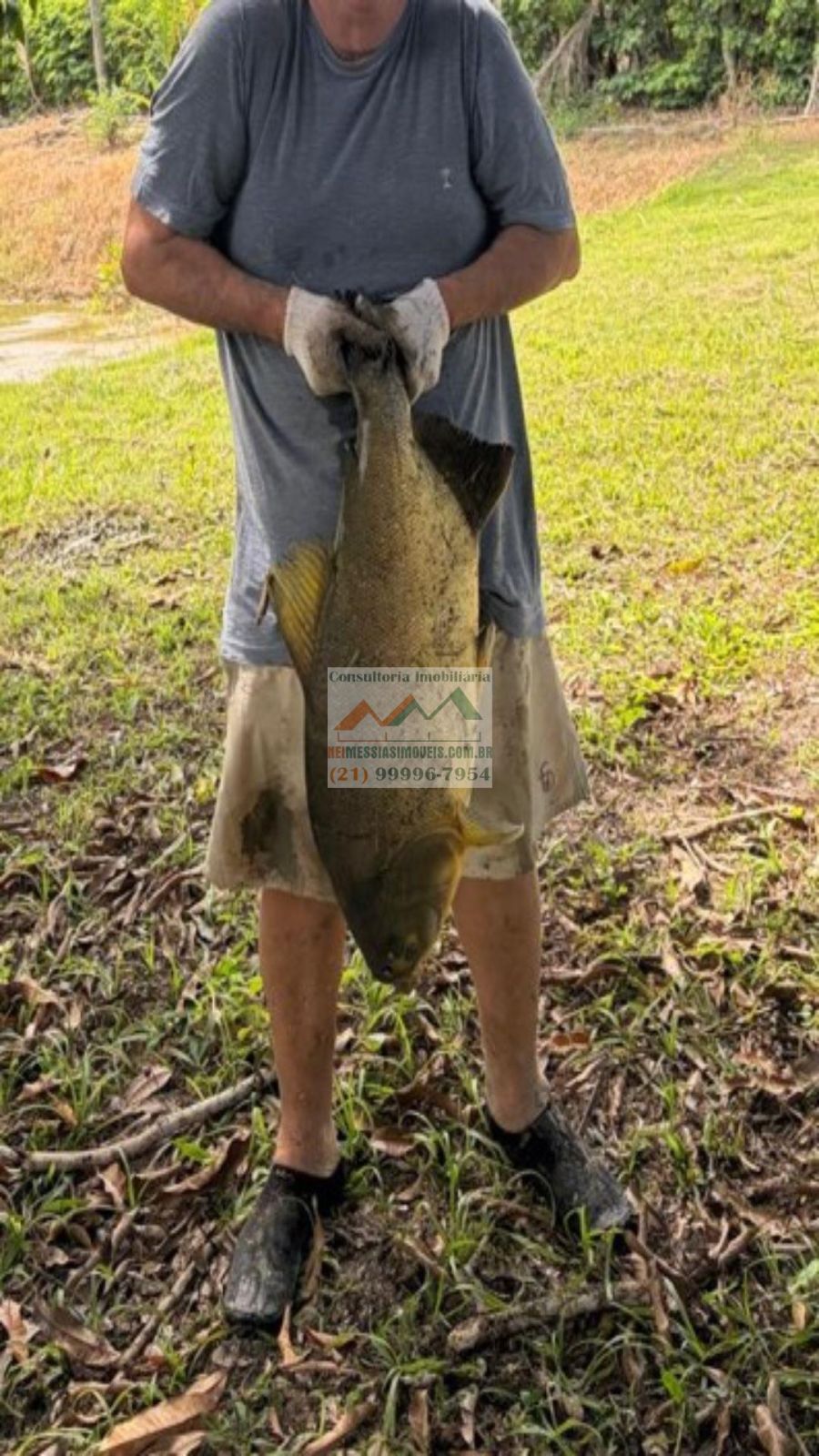 Conta com água de nascente que abastece três grandes lagos ideais para criação de tambakis, além de diversas árvores frutíferas que enriquecem o terreno.