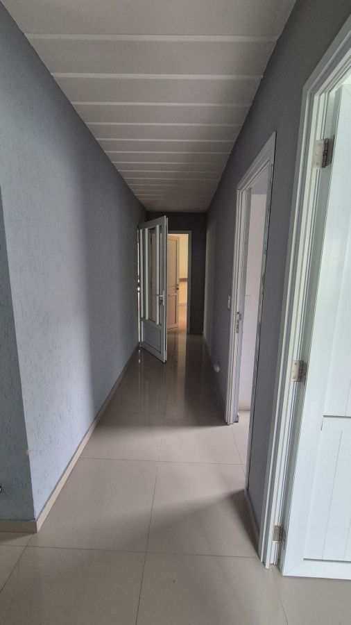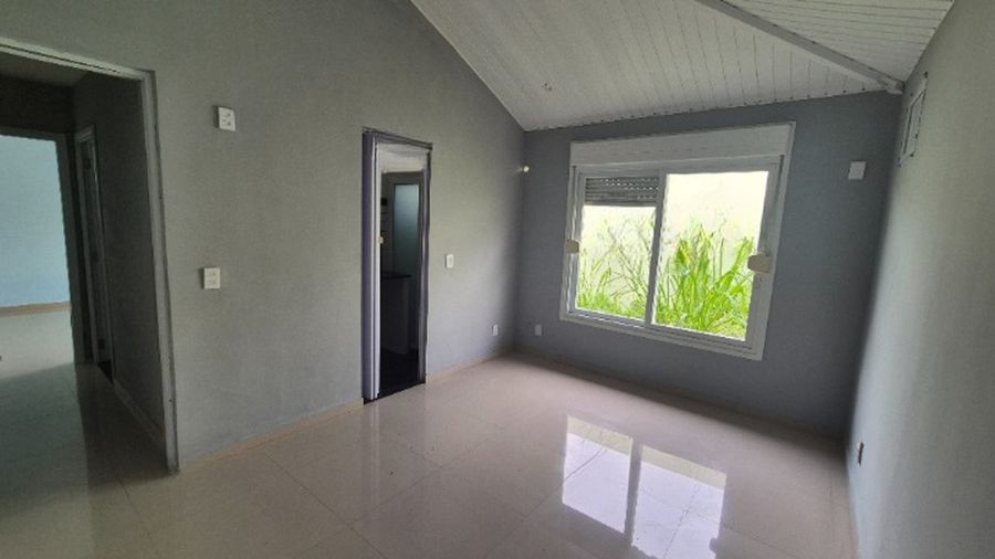 - Casa 3 quartos centro de terreno, 2 são suítes, salão com bar, cozinha com despensa, banheiro social e área de serviço.
